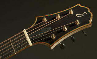 - Ebony "snakehead" unbound headstock with Solomon logo